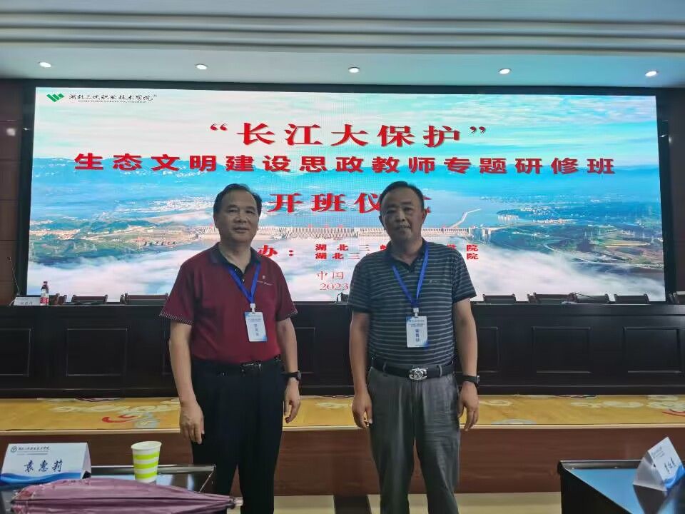 7月21日至27日,beat365官网教师胡顺和常卫峰受邀参加了湖北宜昌干部学院和三峡职业技术学院联合主办的“长江大保护”生态文明建设思政教师专题研修班的培训学习。本次研修学习旨在深入贯彻习近平新时代中国特色社会主义思想和党的二十大精神,学习贯彻习近平生态文明思想,以三峡库区生态文明建设与绿色发展实践为教材、案例,探索“大思政”建设规律,在长江文化底蕴和三峡生态环境中,通过专题讲授、理论研讨、现场教学来提升思政教师的政治素质、理论水平和实践教学能力。通过专题教学为老师们讲好习近平生态文明思想提供了素材,通过现场教学提高了党建引领绿色发展的认识、增强了绿水青山就是金山银山的理念,做到学思用贯通、知信行统一,将所学内容与自己今后的教学形结合,引导学生成为践行习近平生态文明思想的实践者。