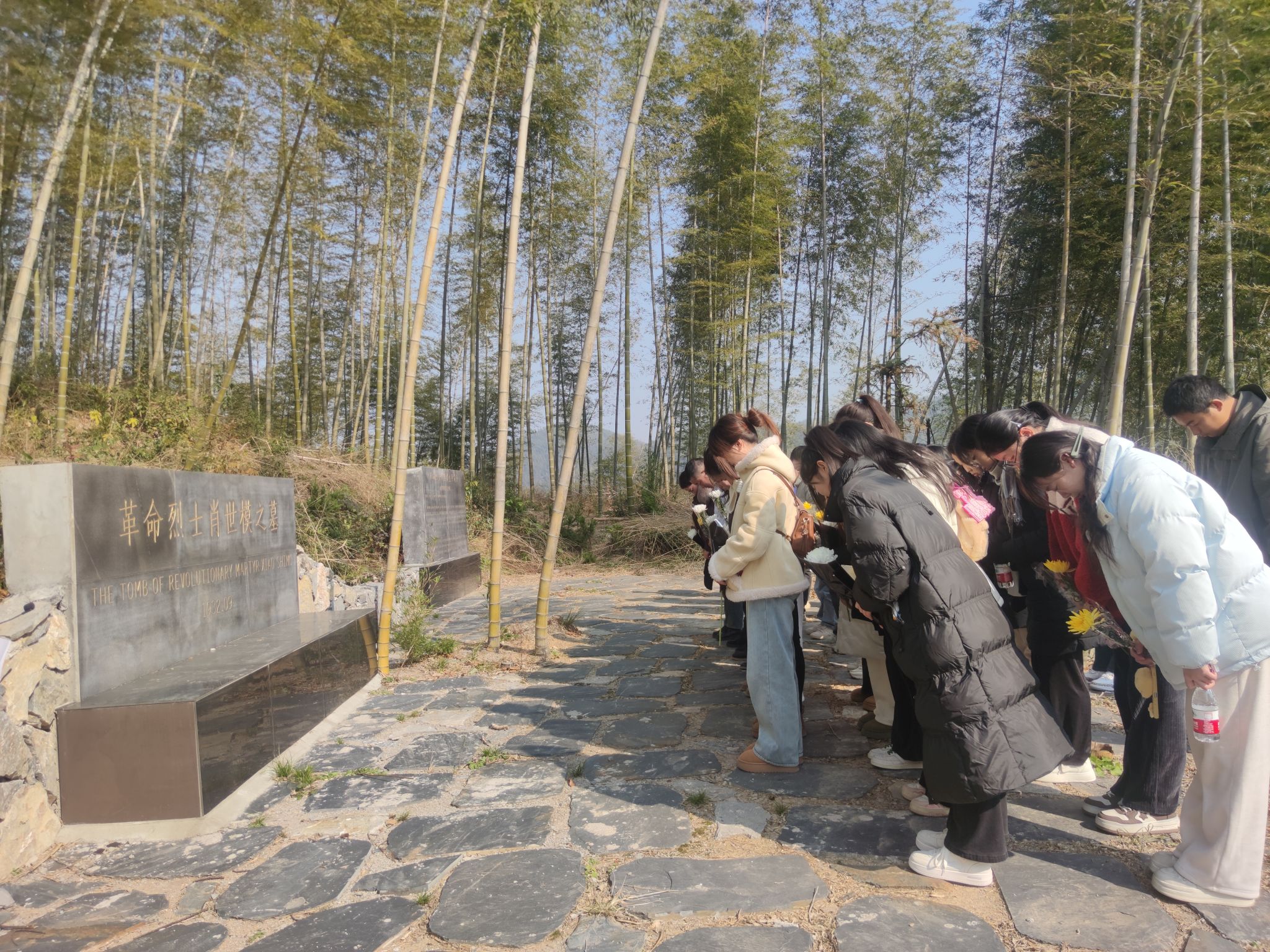 第三站,同学们来到了汀泗桥镇星星村,祭奠烈士肖世模,聆听讲解员讲述肖世模烈士的事迹。