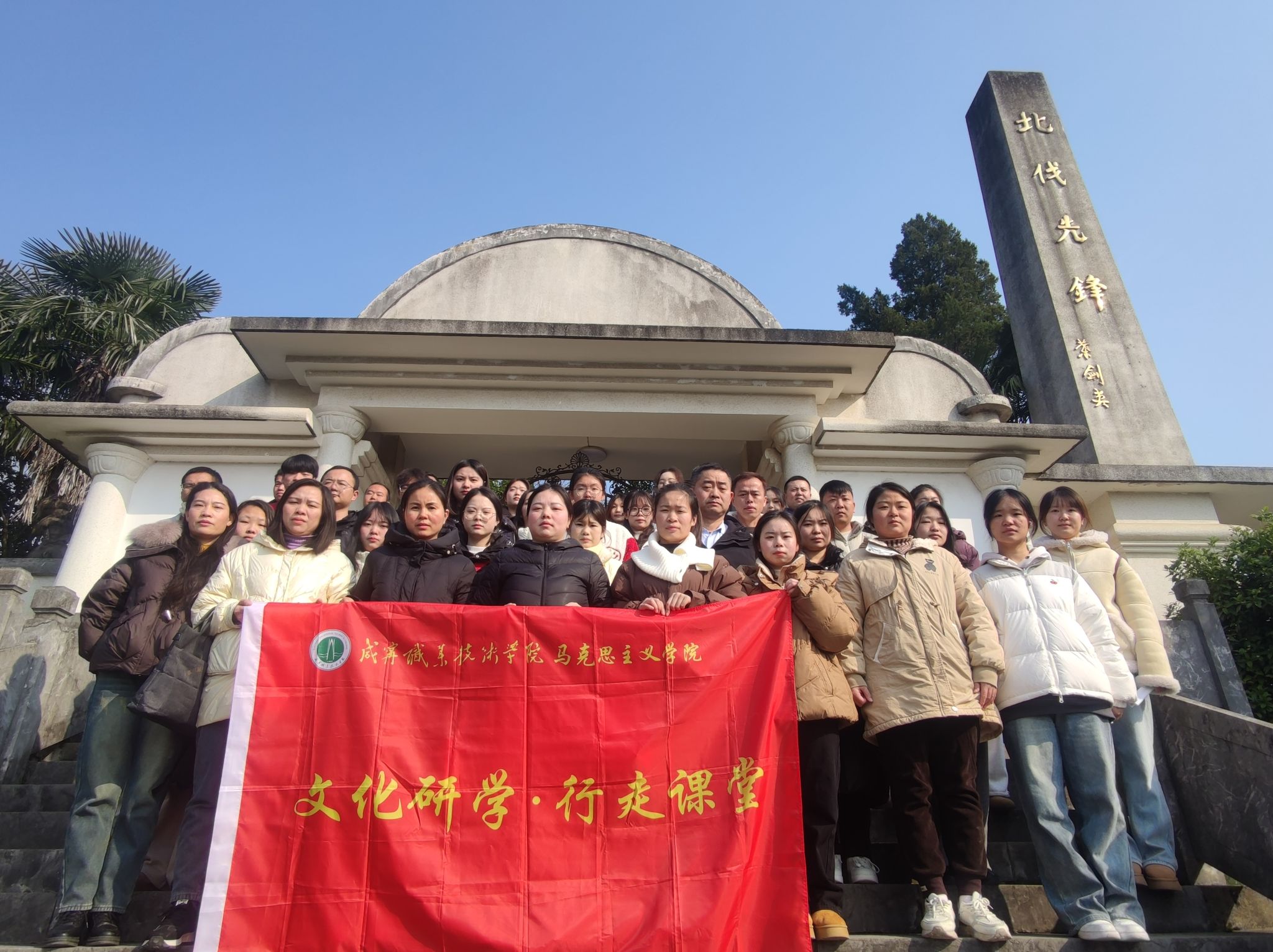 从桂花镇的何功伟烈士陵园到汀泗桥北伐战争纪念馆;从肖世模烈士墓到美丽乡村-陈家沟......2024年12月20日,beat365平台官方网站beat365平台官方网站组织建筑学院、人文艺术学院师生代表一路唱着红歌,追寻着红色足迹,展开了一场以“找寻红色印迹,赓续红色血脉”为主题的研学活动。这是beat365平台官方网站为进一步增强思想政治理论课教学的实效性,开展的“行走的思政课堂”。