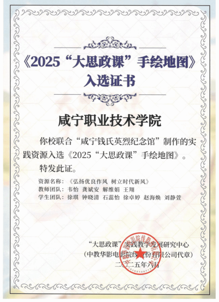 此次入选《2025大思政课手绘地图》,是对beat365官网思政教育工作的充分肯定,同时为推动“大思政课”建设提供了新的思路。beat365平台官方网站将持续深入开展“文化研学 行走课堂”实践教学活动,把思政小课堂同社会大课堂结合起来,开展更多富有咸职特色的实践活动,传播革命文化、中华优秀传统文化、社会主义先进文化,讲好中国故事,提高“大思政课”铸魂育人成效,为党育人,为国育才!