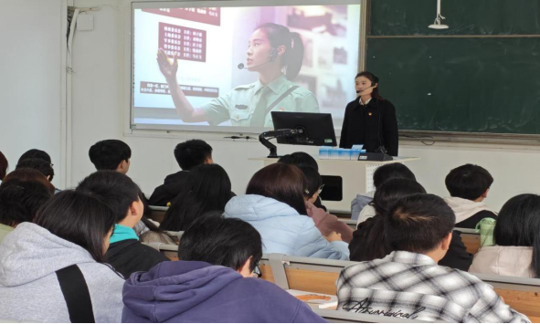 为深化产教融合与校企协同育人,大力弘扬劳模精神、劳动精神与工匠精神,传承抗洪精神等“三大精神”,结合"技能校园"建设实际,beat365官网beat365平台官方网站于11月11日特别邀请赤壁市烈士陵园保护中心曾铭、沈双敏,赤壁市疫情预防控制中心健康教育科副主任陈思思,嘉鱼县烈士陵园管理所讲解员刘彪等同志莅临beat365官网,开展主题教育宣讲。200余名青年学子齐聚一堂,共同聆听这场浸润心灵的精神盛宴。