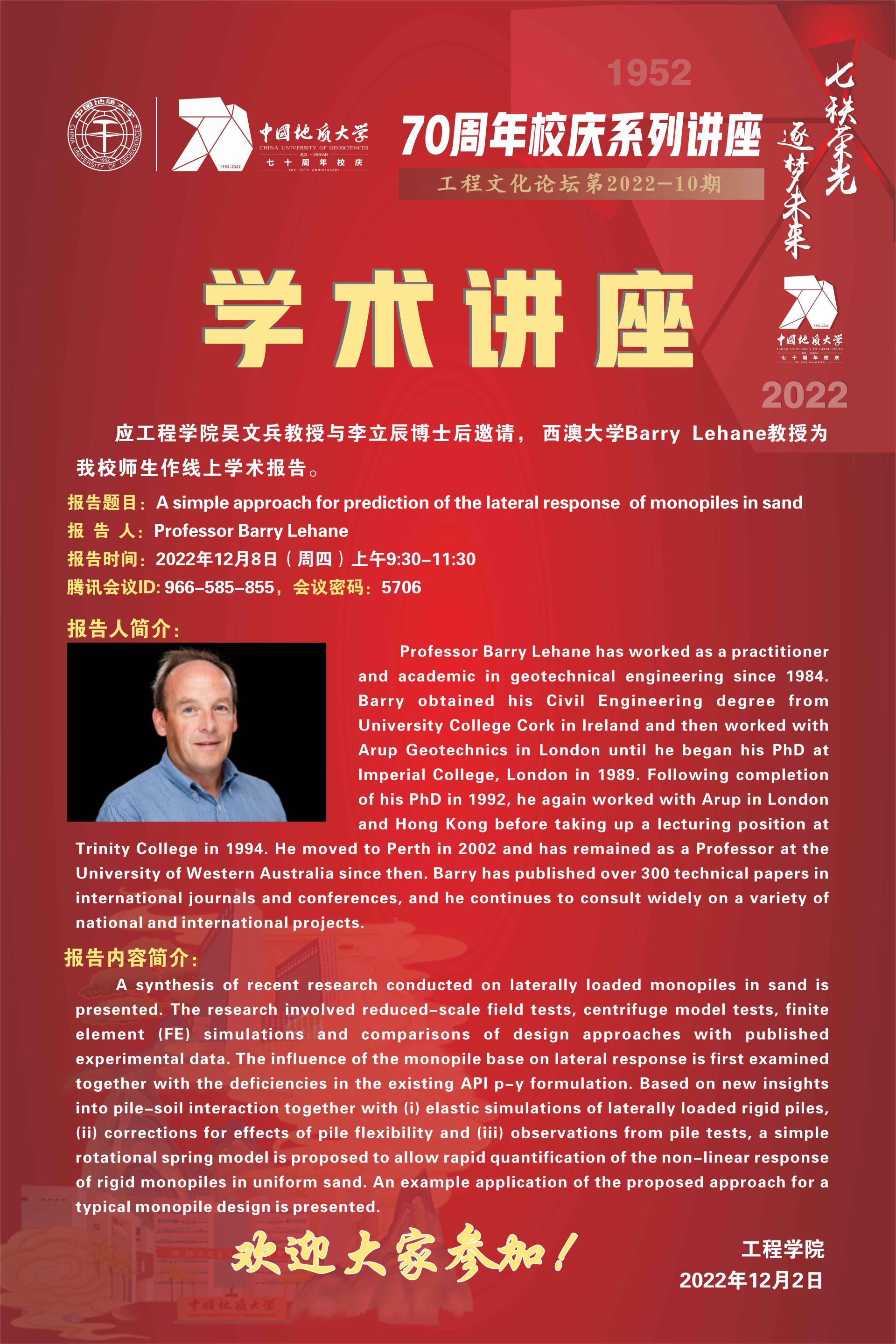 70周年校庆系列讲座工程文化论坛2022-10期(Professor Barry Lehane)
