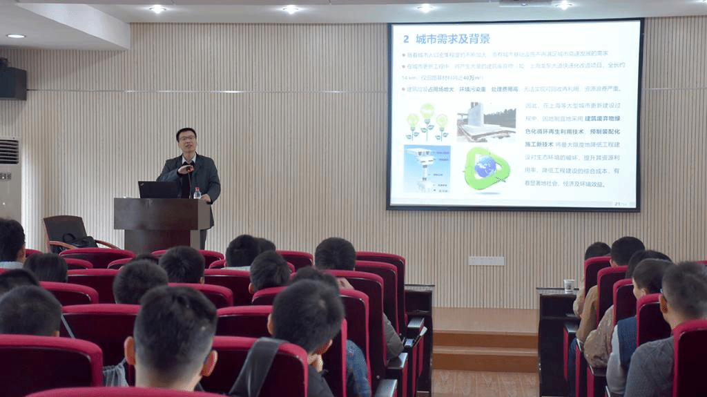 报告围绕“城市更新中绿色施工技术探索与实践”展开,介绍了上海建工集团工程研究总院在复杂的城市环境中绿色施工技术的探索和工程实践经验,分别从“高架桥梁预制拼装技术”、“地下结构预制拼装技术”和“渣土再生利用技术”三个方面介绍了绿色施工技术中的关键技术问题和积累的工程经验。报告结束后,吴小建所长热情回答了参会师生的提问,他衷心希望WilliamHill官网师生在城市绿色施工技术上取得更大的突破,为解决我国城市施工中的环境难题做出贡献。