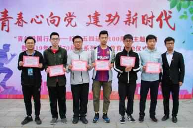 各团支部以“跑步+答题”的形式,回顾历史事件、感悟历史人物、传承五四精神,在奔跑中表达对伟大祖国的祝福。分为“革命的笔杆”、“重走长征路”、“时代列车”、“红色问答”“历史的挑战”、“历史的角落”等7个项目,参赛团支部需要在7个项目中选择完成4个项目,并且需要与团旗合影。根据各团支部完成项目的时长决出名次。
