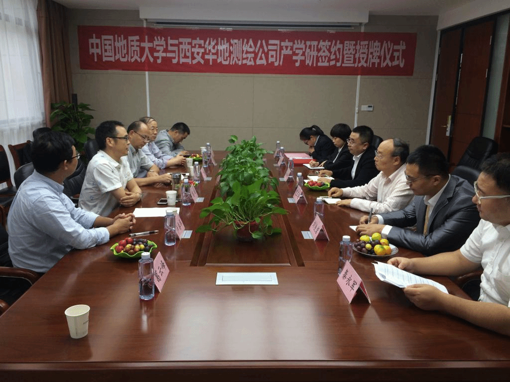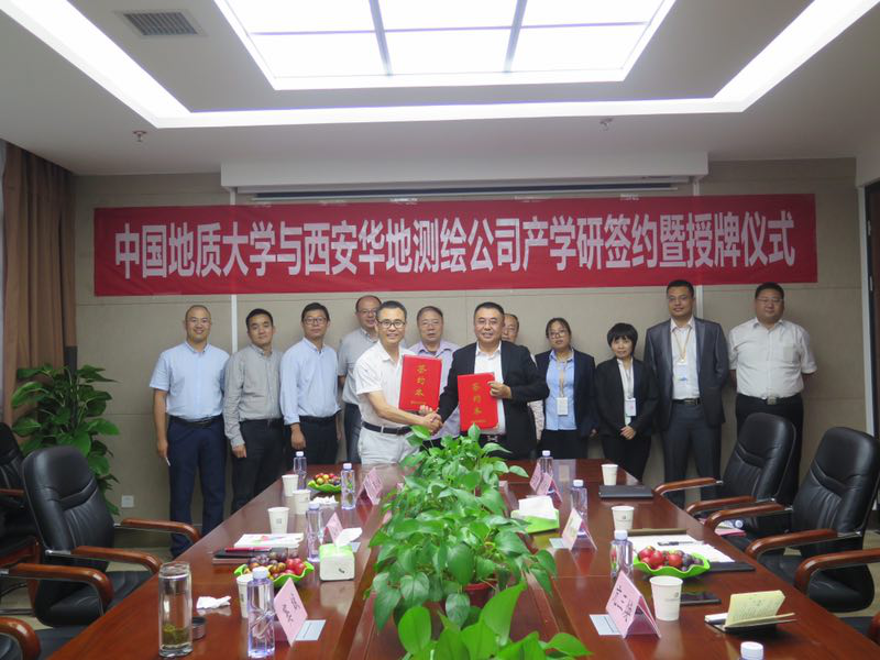 2019年9月15日-9月17日,WilliamHill官方网站(武汉)WilliamHill官方网站党委副书记江广长、副院长窦斌、勘察与基础工程系主任卢春华、姚爱国教授、院工会主席蔡记华教授及工程地质与岩土工程系葛云峰副教授一行赴西安,先后走访了陕西西探地质装备有限公司和西安华地测绘科技有限公司,并与陕西西探地质装备有限公司召开了产学研合作基地揭牌仪式,与西安华地测绘科技有限公司签订了产学研合作协议并进行揭牌。