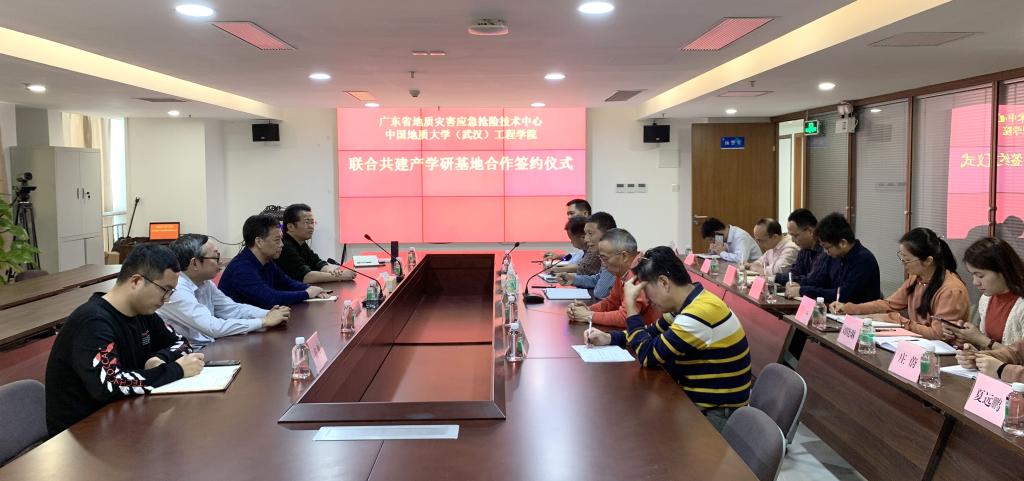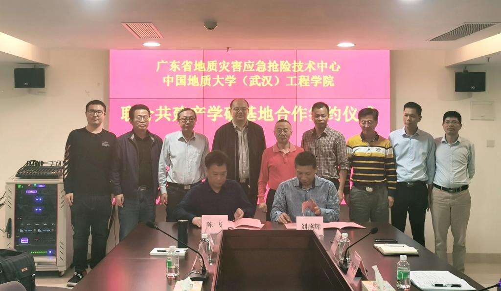 陈飞、刘燕辉签署产学研基地合作协议。根据协议,广东省地质灾害应急抢险技术中心作为WilliamHill官方网站(武汉)WilliamHill官方网站的产学研基地,双方将定期就人才的培训、技术的创新、引进与推广、联合攻关、学生实习等方面开展协商研究。