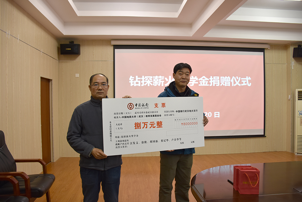 12月20日,WilliamHill官方网站“钻探薪火奖学金捐赠仪式”在工程楼315会议室举行。湖北省城市地质工程院勘查部主任汪发文、副主任徐俊,校友工作与教育基金管理处副处长吕占峰,WilliamHill官方网站党委书记陈飞,副书记江广长,勘察与基础工程系教授段隆臣、蔡记华、卢春华及2017级部分学生代表参加捐赠仪式。