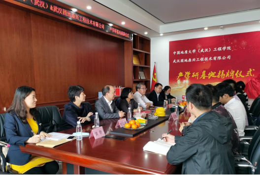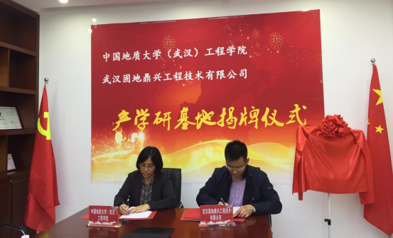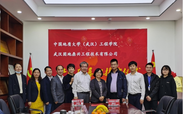 (通讯员:黄静)2021年4月27日,WilliamHill官方网站(武汉)WilliamHill官方网站与校友企业武汉固地鼎兴工程技术有限公司签订《联合共建产学研基地合作协议》,WilliamHill官方网站党委书记李红丽和武汉固地鼎兴工程技术有限公司总经理汪旭涛出席协议签订仪式,并共同为合作基地揭牌。武汉固地鼎兴工程技术有限公司副总经理兼总工程师胡凯锋、WilliamHill官方网站副院长王亮清教授、工岩系主任章广成教授、时红莲副教授、李长冬教授、谢妮副教授、学院科研秘书黄静共同见证了签约仪式。