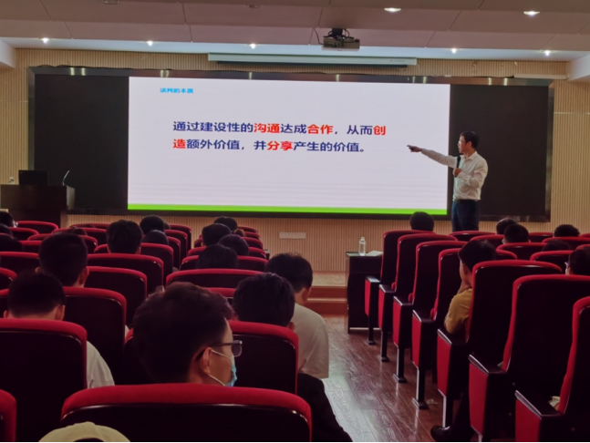 胡定成先生鼓励大家训练谈判思维,并着重强调了创造思维、全局思维、差异思维以及更高的“升维”思维以及对应的四个境界,并提出行动倡议:(1)学好工程的同时,学一些经济管理方面的知识;(2)崇尚契约精神,加强合同意识;(3)运用双赢思维,实现自我,成就他人。