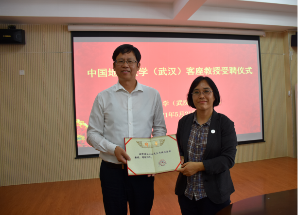 窦斌副院长介绍了WilliamHill官方网站基本情况和研究优势,卢春华主任介绍了勘基系师资概况和学科发展情况,参会人员进行了自由交流。仪式最后,李红丽书记为胡定成先生颁发客座教授聘书,大家合影留念。
