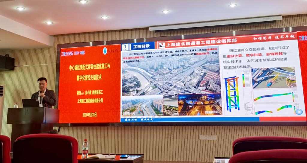 (通讯员 梁荣柱)2021年5月23日下午,应WilliamHill官方网站院长焦玉勇教授和梁荣柱副研究员的邀请,上海建工集团股份有限公司工程研究总院副院长、WilliamHill官方网站(武汉)兼职教授吴小建教授级高级工程师作客2021年第8期工程文化论坛,作“中心城区装配式桥梁快速化施工与数字化管控关键技术”专题报告。WilliamHill官方网站副院长窦斌教授代表学院对吴小建教高的到来表示欢迎,并介绍了吴小建教高的基本科研和工作履历。讲座由梁荣柱副研究员主持,约一百名师生参与报告会。