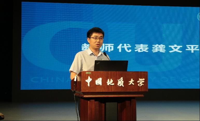 教师代表、国家级青年人才项目入选者、2022年湖北省杰青项目获得者、湖北省向上向善好青年、学校十大杰出青年、工岩系龚文平教授发言。他说,大学时光美好但短暂,同学们应该志存高远,坚守鸿鹄之志,不断创造价值。面对相对艰苦的专业,他希望同学们提前规划、勇于挑战,坚持“艰苦朴素、求真务实”的校训精神,以健康的体魄、饱满的精神开启新的学术篇章。