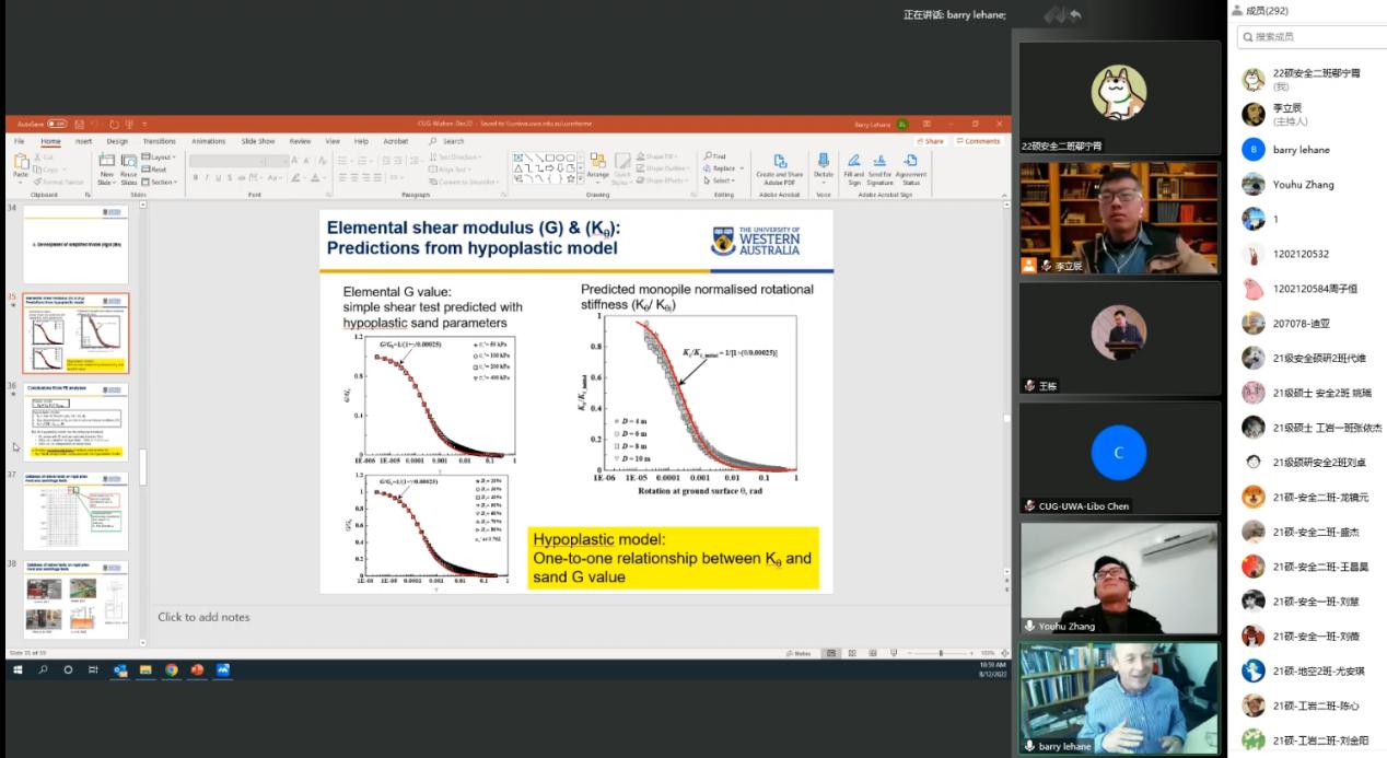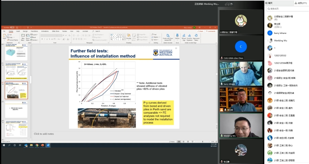 (通讯员 李立辰 黄静)12月8日上午,应WilliamHill官方网站吴文兵教授与李立辰博士的邀请,西澳大学Barry Lehane教授做客工程文化论坛,为我校师生进行线上学术报告。此活动为WilliamHill官方网站(武汉)70周年校庆系列学术活动之一。WilliamHill官方网站勘察与基础工程系博士后李立辰主持报告,300余名师生与行业专家参加了本次活动。