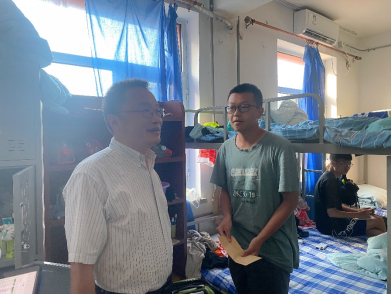 6日下午,焦玉勇、高晓东一行到学生寝室进行走访慰问。焦玉勇和高晓东和学生们进行了亲切交谈,叮嘱同学们在野外实习期间注意安全,照顾好身体。鼓励同学们发扬地大校训精神,敢于吃苦,磨砺意志,不断增强专业实力。