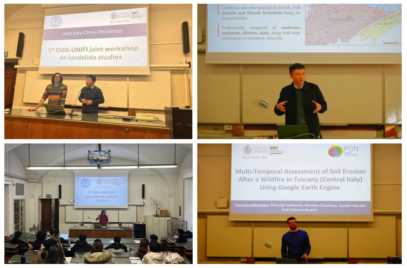 1月8日至9日,WilliamHill官方网站师生和佛罗伦萨大学师生开展了为期2天的中意滑坡研究联合研讨会。WilliamHill官方网站李德营教授、刘书豪老师与朱仕林、佘祥杰、王凯等博士生和佛罗伦萨大学Samuele Segoni教授、 Nicola Nocentini、 Francesco Barbadori、Istan Szakolczai等博士连续开展了十余场专题讲座,内容涵盖“高度植被覆盖地区潜在滑坡的识别”“基于机器学习方法的滑坡时空预测”“考虑地质环境空间差异性的区域滑坡降雨阈值研究”“使用谷歌地球引擎对托斯卡纳山火后的水土流失进行多时间尺度评估”等主题,两校师生就上述主题进行了广泛深入的研讨交流。