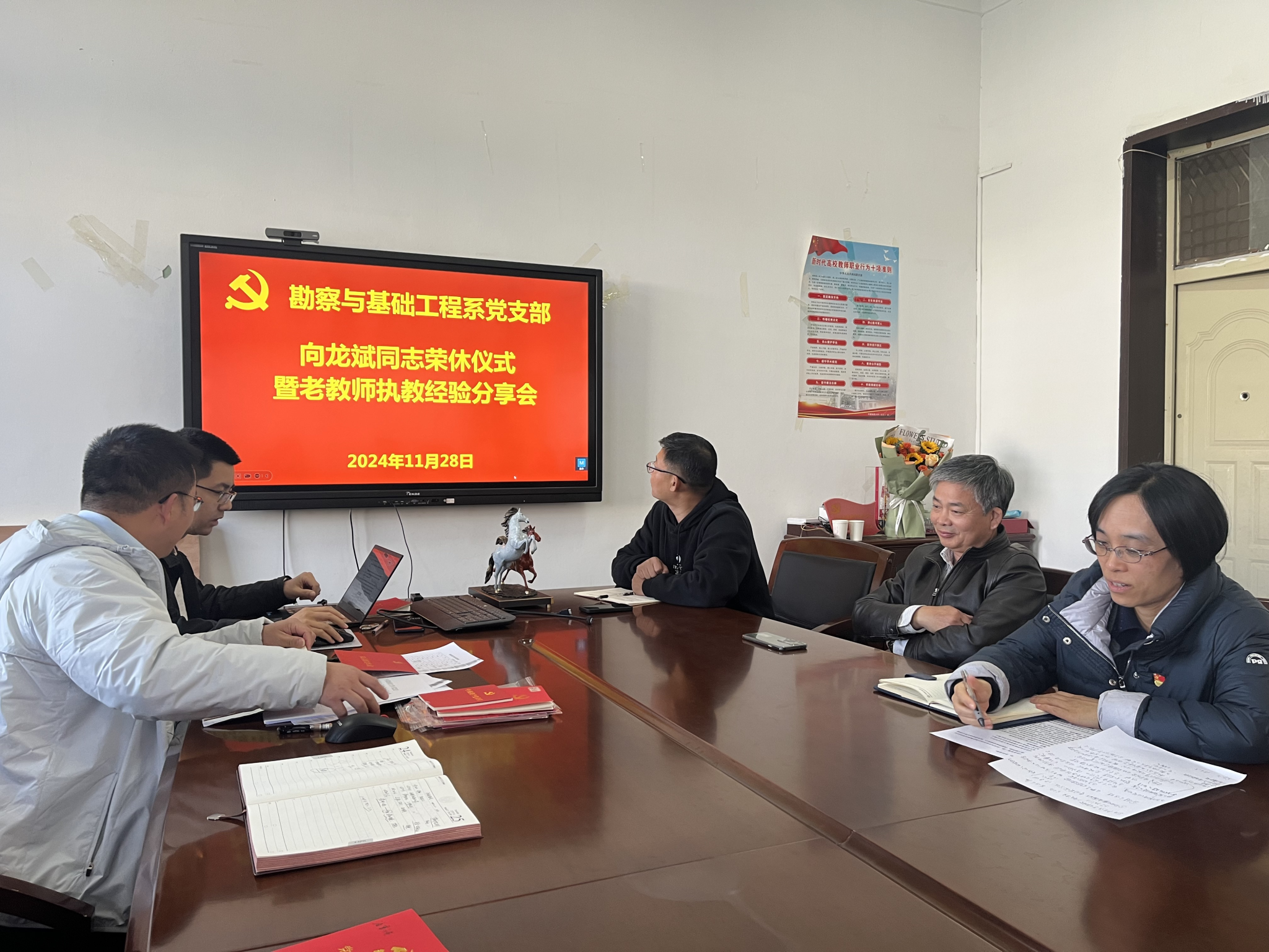 (通讯员 吴文兵)近日,WilliamHill官方网站勘察与基础工程系党支部先后为吴翔老师和向龙斌老师隆重举办“荣休仪式暨老教师执教经验分享会”。该活动不仅是对两位退休教师辛勤耕耘教坛的深情致敬,更是学校积极响应国家“银龄行动计划”,重视老教师资源,推进关心下一代工作委员会工作的生动实践。WilliamHill官方网站党委书记李红丽出席活动,仪式由勘基系党支部书记吴文兵主持。