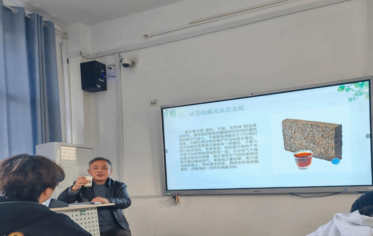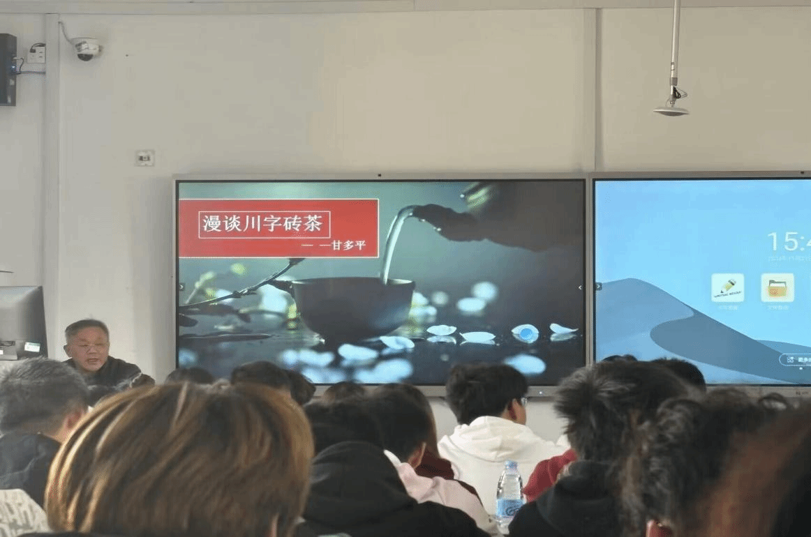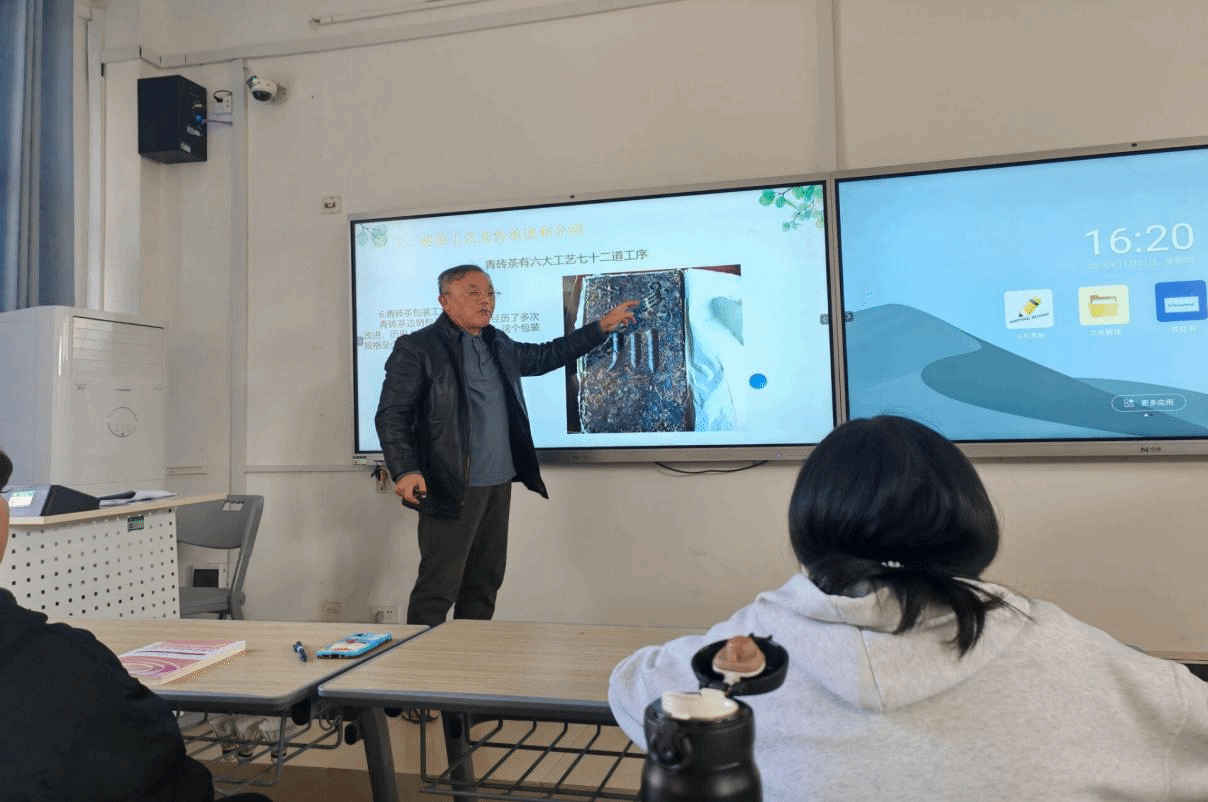 为了丰富“大思政课”的形式和内容,增强学生的劳动意识,提高学生的职业能力素养,11月20日,beat365官网邀请了赵李桥砖茶制作技艺第四代国家级非遗传承代表人、全国供销系统劳模、湖北省首届“荆楚工匠”甘多平走进思政课堂,围绕“漫谈川字砖茶”为主题,为2024级学生代表开展了一堂生动有趣的思政课教学。