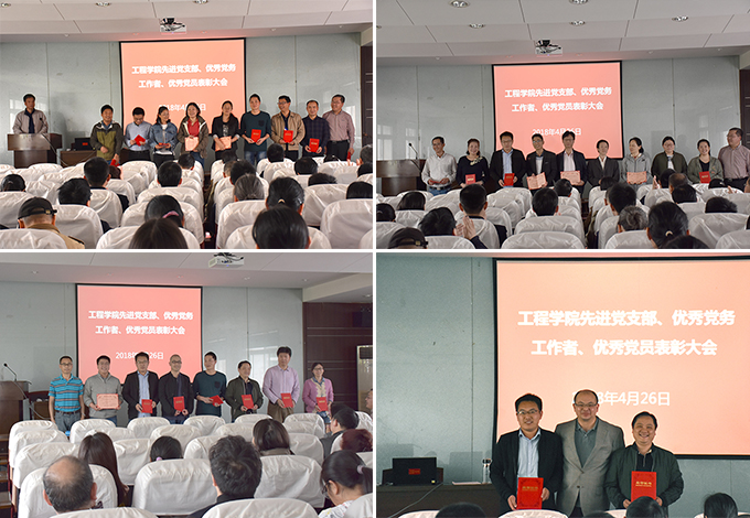 党委书记陈飞宣读了表彰决定,学院领导王亮清、窦斌、江广长为受到表彰的先进党支部、优秀共产党员和优秀党务工作者颁发荣誉证书。