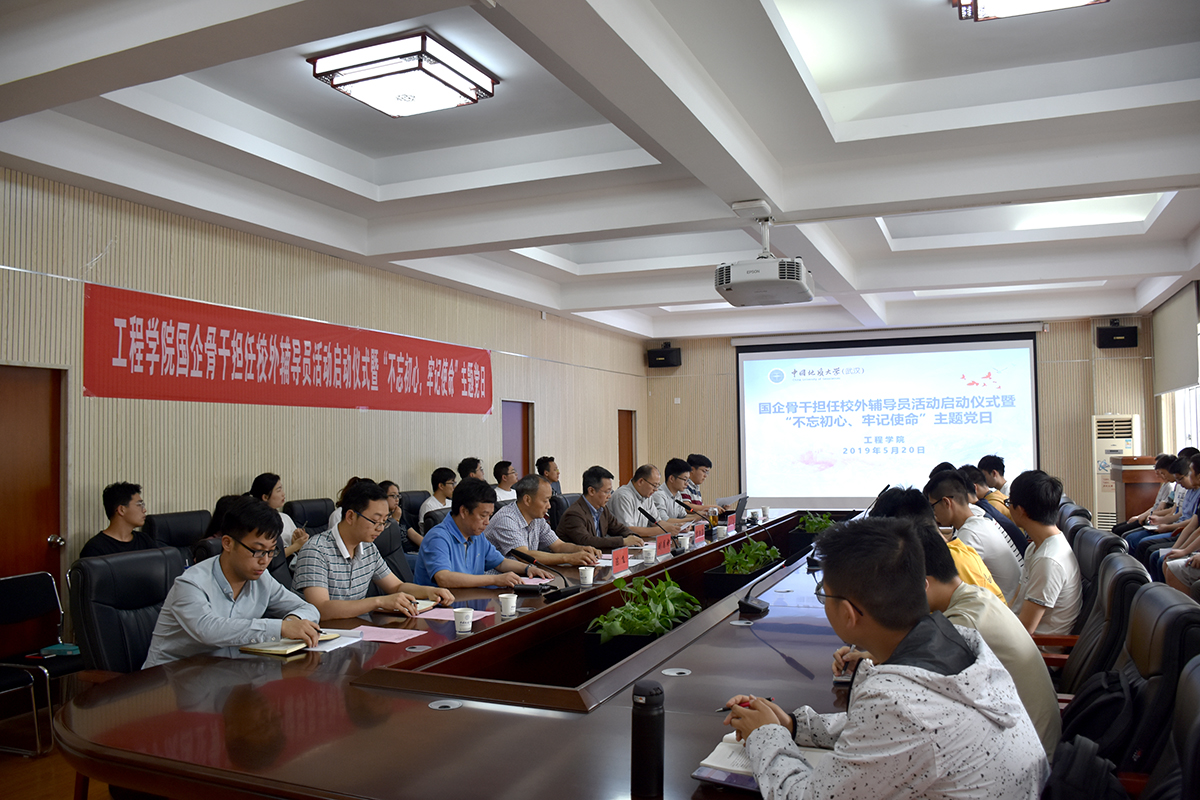 5月20日下午,WilliamHill官方网站国企骨干担任校外辅导员启动仪式暨“不忘初心,牢记使命”我与国企面对面主题党日在工程楼315报告厅成功举行。WilliamHill官方网站校外辅导员、中国黄金集团湖北三鑫金铜股份有限公司提升车间主任、党支部书记刘月中,学校学工处副处长苏洪涛,WilliamHill官方网站党委书记陈飞、副书记江广长、全体辅导员及四个学生党支部共40余人参加活动。