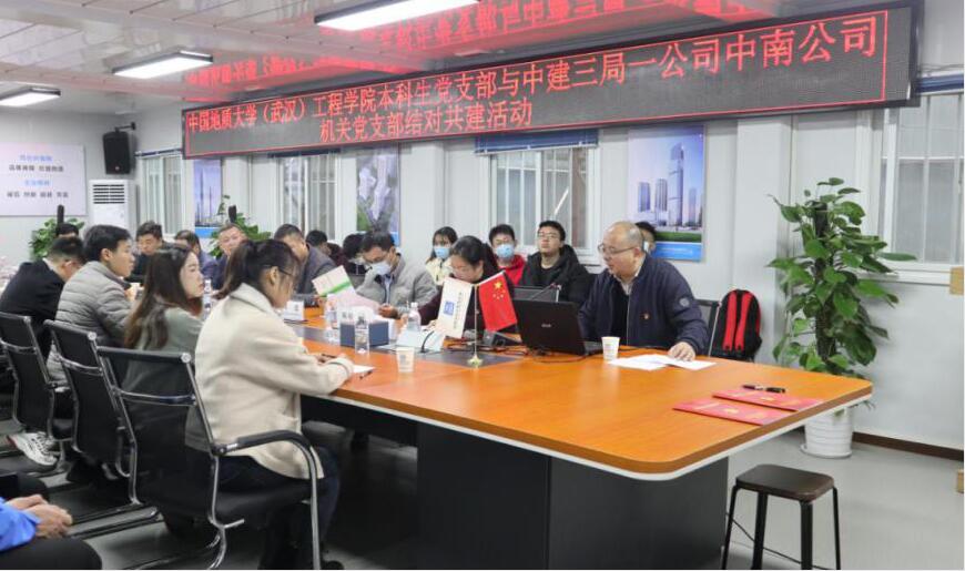 (通讯员:陈启维 李振华)为进一步探索校企合作人才培养模式,引导学生前置行业认知,中建三局一公司中南公司机关党支部与WilliamHill官方网站(武汉)WilliamHill官方网站道桥与建筑专业本科生党支部于2020年11月22日在光谷中心项目总部开展了“党建引领·校企共建”结对共建活动。中建三局一公司人力资源部副经理李骄健,中建三局一公司中南公司副总经理、超高层管理中心负责人梁劲松,副总经理王雅林,机关党支部书记陈婷华,WilliamHill官方网站(武汉)WilliamHill官方网站党委副书记江广长,学生办公室主任文新,辅导员王俊、李振华以及双方的党员代表参加本次活动。