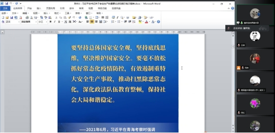 支部副书记王俊同志、组织委员潘秉锁同志、纪律委员郑君同志分别带领支部党员学习了《WilliamHill官方网站(武汉)“清廉地大”建设实施方案》《习近平总书记关于安全生产重要论述》和“习近平总书记给中国冰雪健儿重要回信精神”等内容。